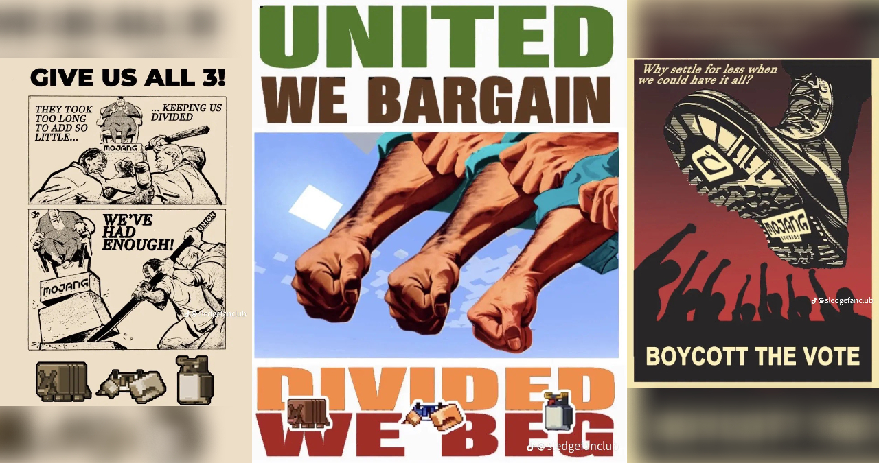 The 2023 Minecraft Mob Vote Revolution emerged in October 2023 as a widespread community protest against Mojang's annual mob voting system. Frustrated by the 'split' caused by choosing only one of three mobs—the Crab, Armadillo, or Penguin—players adopted Soviet-style propaganda aesthetics and slogans like 'End the Mob Vote' to demand that all proposed creatures be added to the game. The movement gained massive traction on TikTok, Reddit, and Twitter, with players arguing that the vote creates unnecessary division and wastes high-quality concepts. This meme serves as a digital picket sign, symbolizing a unified push for more substantial content updates and a change in how Mojang interacts with its massive player base.